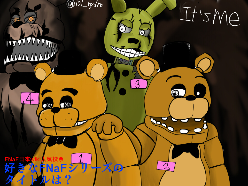 投票実施期間(2015/10/12~2015/11/09 12時) 投票終了! FNaFシリーズのゲームタイトル4作品を対象にした人気投票。 投票フォーム※投票は終了しています。 候補一覧応援イラスト各キャラクターたちに寄せられた応援イラストです。 Five Nights at Freddy's(無印)Five Nights at Freddy's 2Five Nights at Freddy's 3Five Nights at Freddy's 4複数タイトル結果発表※現在、結果発表の準備中です。 コメント |