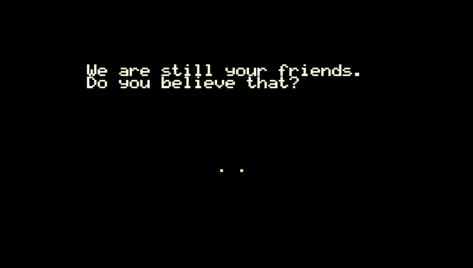 【???】 向こうで起きる全てが、こちらに影響する。 ここは安全な場所。 何かが非常におかしい。 でも、僕は君を同じ目には合わせない。 君は僕がなおす。