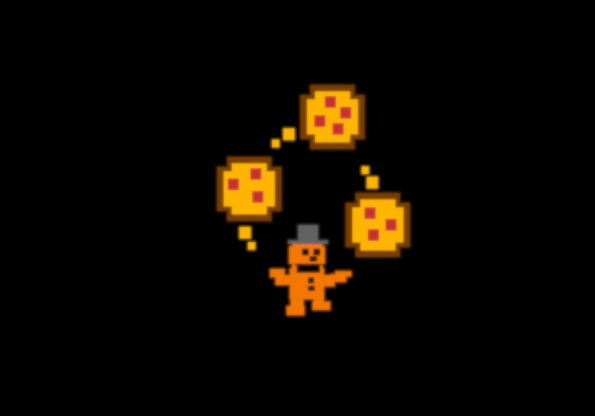 Scott Gamesでは、Freddy(またはFredbear)がピザらしき物体でジャグリングを行っているような画像になっており、