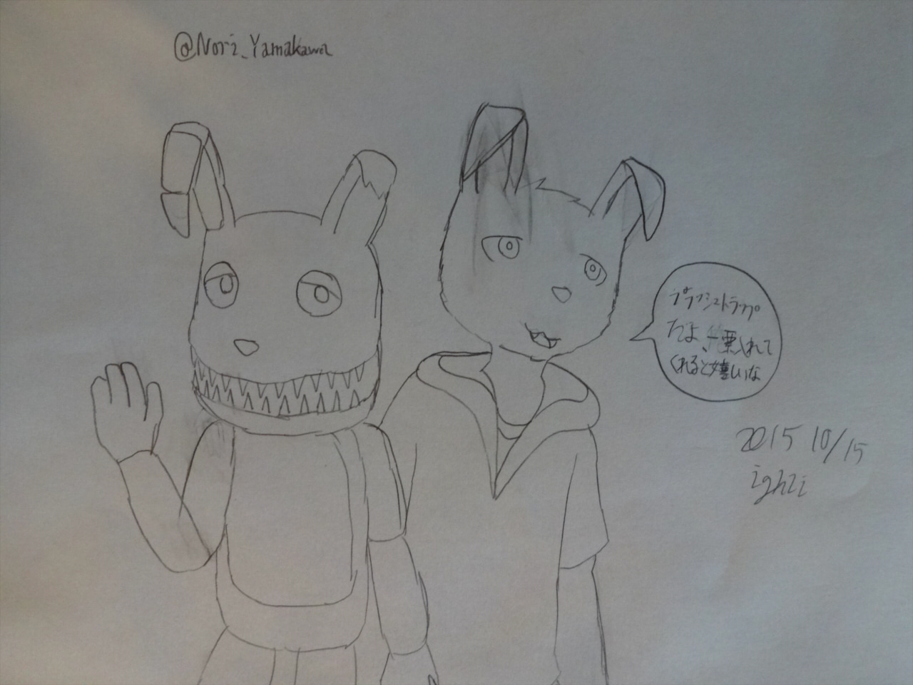 応援イラスト各キャラクターたちに寄せられた応援イラストです。 【FNAF】 Bonnie【FNAF2】Toy Bonnie【FNAF2】Bonnie【FNAF2】Shadow Bonnie【FNAF3】Springtrap【FNAF4】Nightmare Bonnie【FNAF4】Plushtrap複数キャラクターコメント |