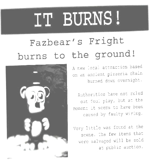 第6夜目クリアにおいて見れる新聞記事では、 新聞記事の向きを変えて比較してみるとスプリングトラップといくつか同じと思われるところが見られた。 |