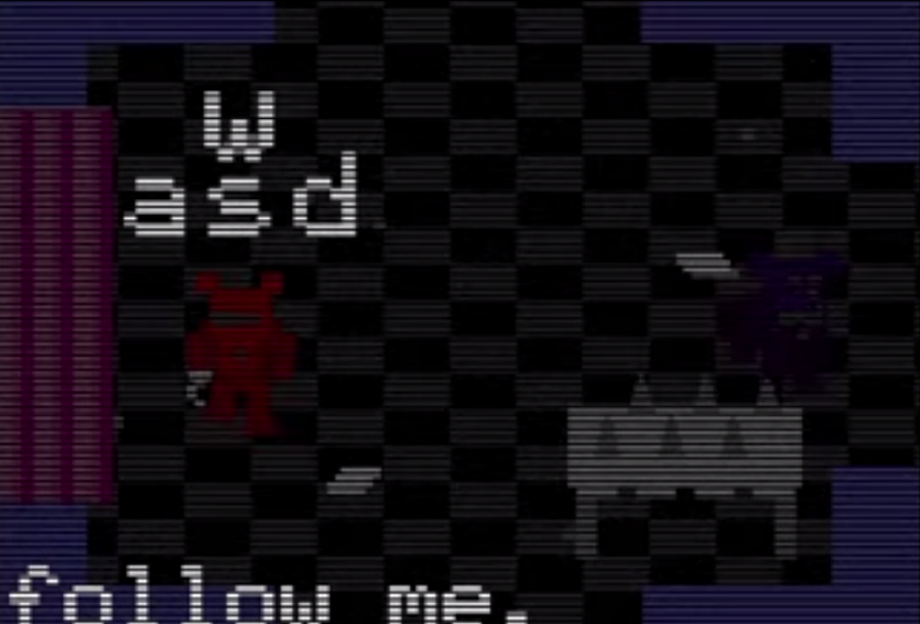 下の画像はFNaF2のミニゲーム「SAVE THEM」に低確率で出現する紫の男だ。