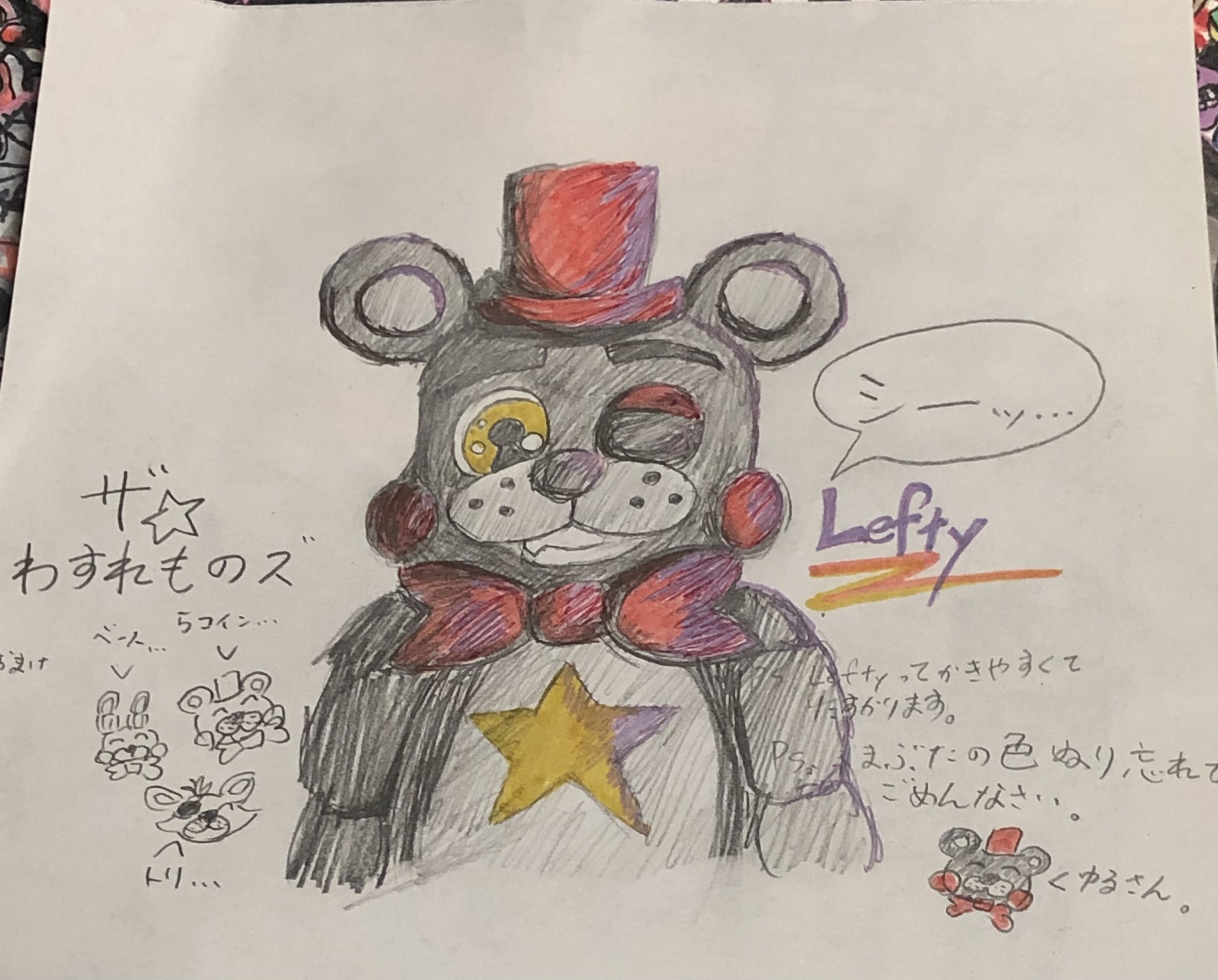 その1…ヘンリーさんの様にお布団と対立している者が今回のグレゴリー君の様になったら助ける様設計した説 その2…既に犠牲者が出ていてフレディに宿っている その2に関しては、フレディさんが喋っていたり、助けてようとしたり、直接グレゴリー君の名前を呼んでいるからです 今のところは多分その1が有効かも知れません…多分 -- バイト初心者? 2021-10-29 (金) 15:31:38