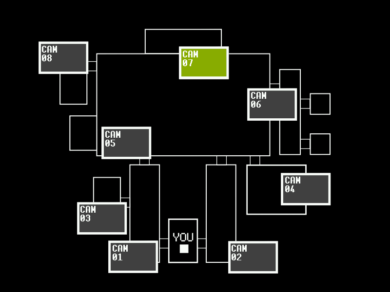 CAM 07 - Prize Corner(プライズコーナー) グッズが売られているカウンター。 ここではFaz-Coinsを使用して対応アニマトロニクスへの対処に必要なぬいぐるみと、Death Coinの購入が可能。 アニマトロニクスへの対処には使用するものの、 初期位置がこの部屋のアニマトロニクス