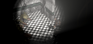 暗く不気味な部屋。 ボロボロに変わり果てた旧人形たちが部品として転がされている。 初期状態ではフレディ、ボニー、チカの変わり果てた姿を見る事ができる。 (その後嫌というほど見る事になるが…) また、フォクシーは確認できないものの、この部屋にはいるようで 部屋の真ん中に立っているのを見る事ができる。