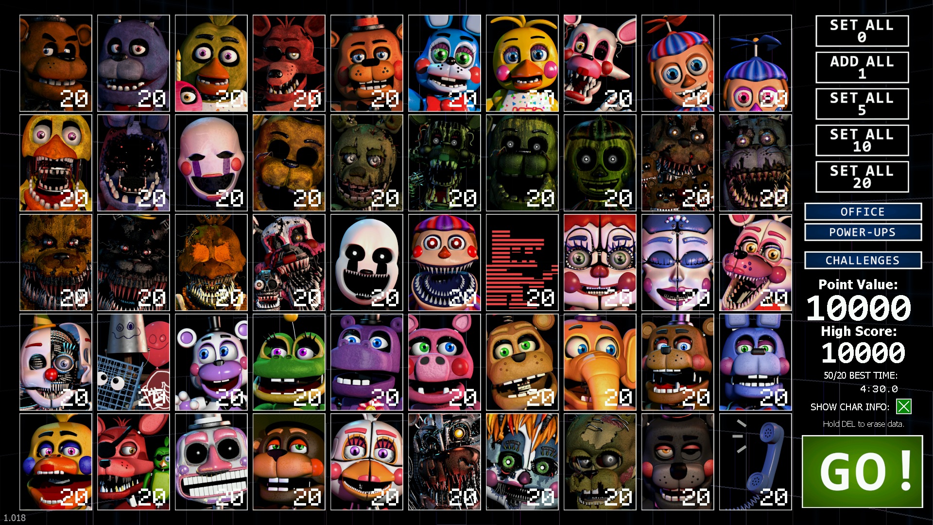 前作SLのカスタムナイトと異なり、今回は「非公式」だとはっきり言われていないのが引っかかる。普通に考えれば、時代も構造も、さらには世界観すら異なる?(fnaf world)キャラクターが一堂に会するわけがないのですが……50/20を突破できたときに、何かが分かるんだろうか? -- 2018-06-29 (金) 16:20:40