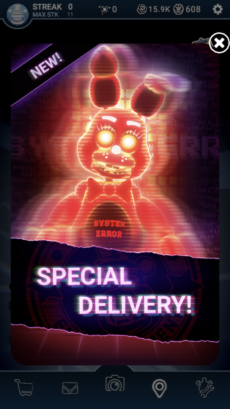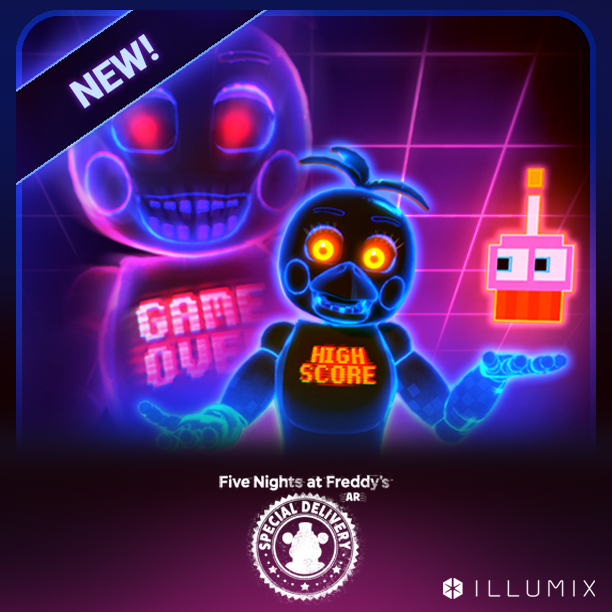 このスキンには2種類の外観が存在している。 保有アニマトロニクスの場合は青い輪郭で、クチバシがついており胸に「HIGH SCORE」と書かれているが、 襲撃時には紫の輪郭で、クチバシが無く胸に「GAME OVER」と書かれている。 どちらにも共通して輪郭がネオンのように発光しており、 真っ黒なボディにタイルのような模様が浮かび上がっている。
