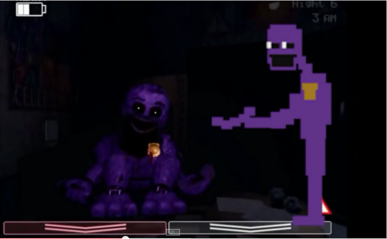 紫の男 SAVETHEMを始めとしてGIVE GIFT, GIVE LIFE以外のミニゲームで存在が確認できる謎の人物。 【その正体は?】 その正体についてだが、ある程度の推測を立てることができる。 紫の男が持っているのは電話に、また胸に付けている物はワッペンに見えないだろうか? ※高画質にしたもの↓ FNAF3でもミニゲームに登場しているが… 【紫の人形?】 時々当wikiに掲載されるこの画像の紫の人形についてだが、 ↑確認されたという、その動画。 |