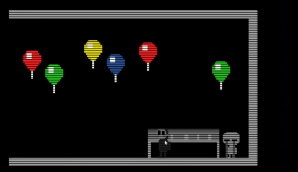 風船の足場を辿っていくと、ケーキが置いてある。ケーキに触れるとミニゲームが終了する。