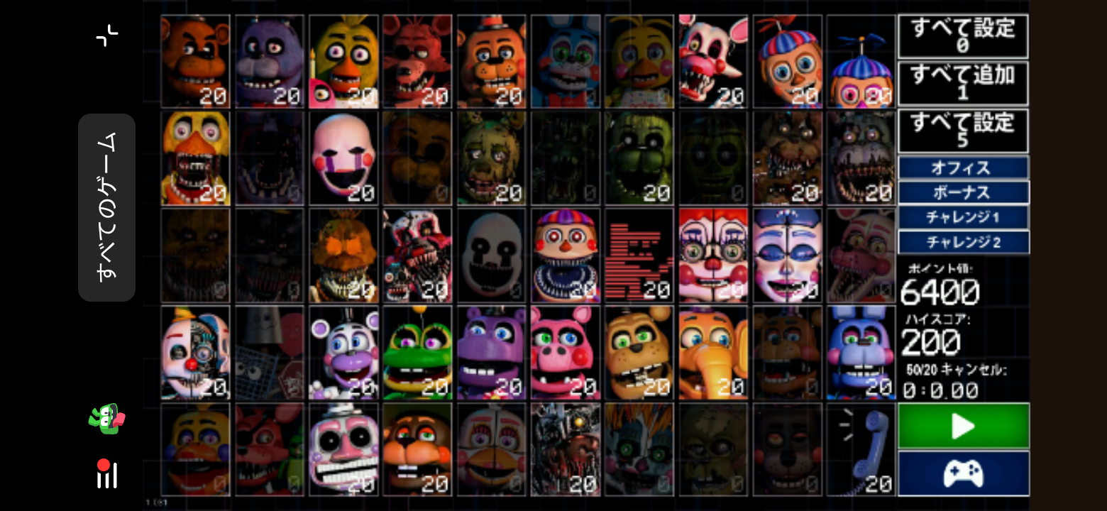 50体全てのアニマトロニクスのレベルを最大にした際の難易度は、まさにアルティメットカスタムナイト。