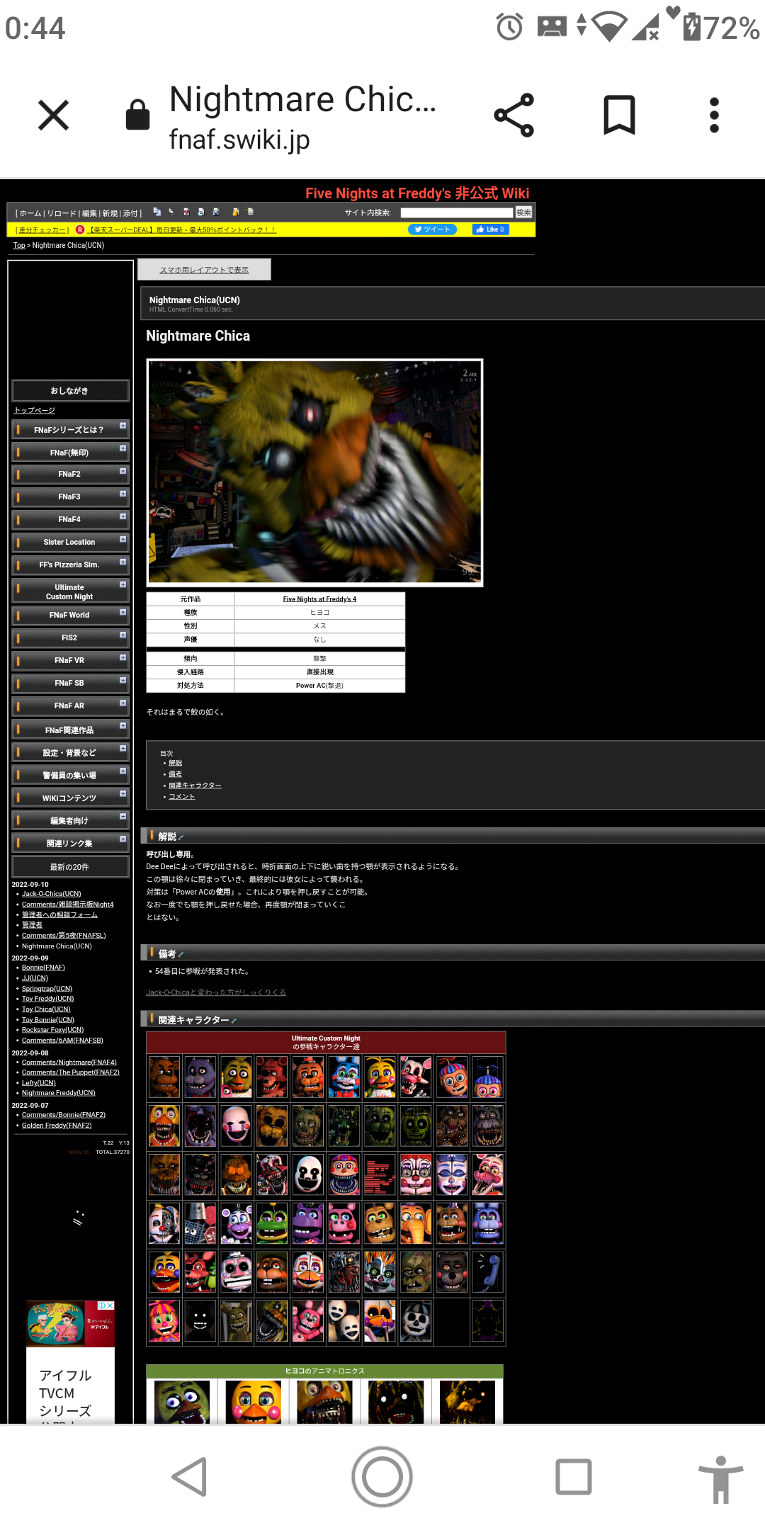 ここはfnafのwikiなのに、そのネタをこのwikiでコメントするのはあまりよくないのではと思いました。そのゲームもとても人気のあるゲームで、知っている人がたくさんいて、不快になる人がいるのでは、と思い、報告させていただきました。対処をよろしくお願いいたします。 -- 2018-04-01 (日) 21:32:50
