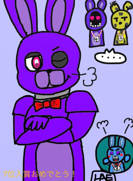 7位にランクインしたのはBonnie(FNAF)。 予選時点では4位と高い支持を得ていたが、やはりいずれか1体に絞るとなると難しい部分があった模様。