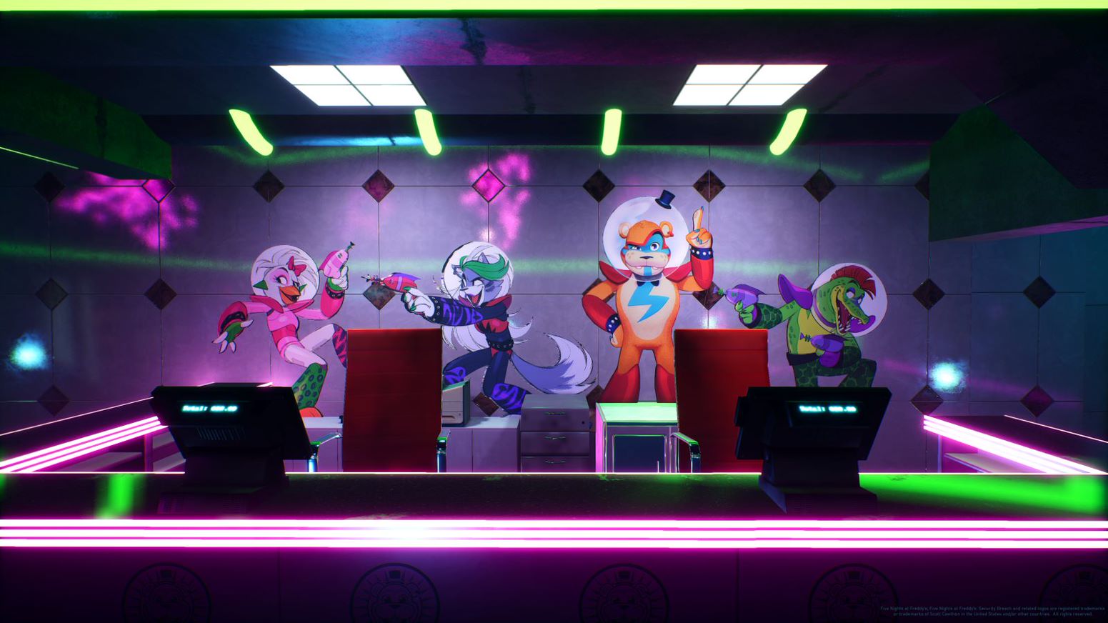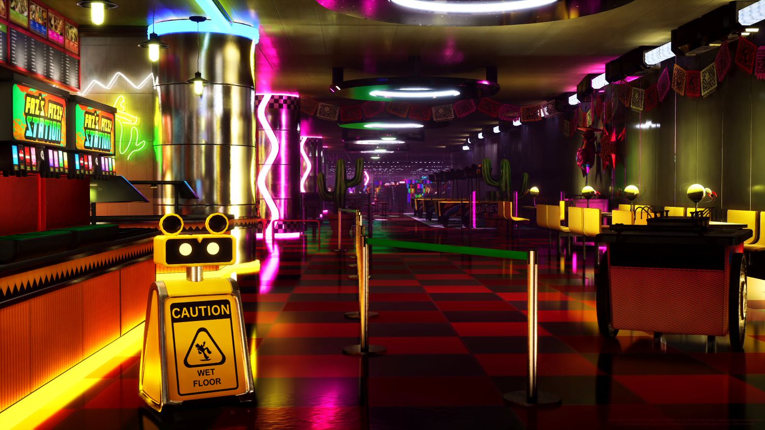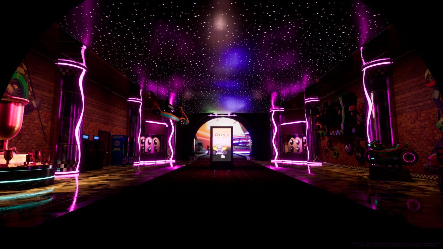 画像はいずれもゲームの舞台となるFreddy Fazbear's Mega Pizzaplexの店内画像。
