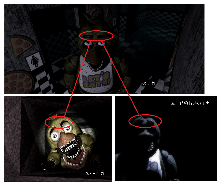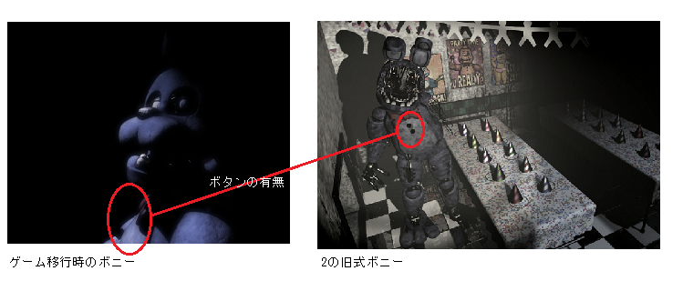 このとおり、眉毛とボタンの有無により、(FNAF2における各夜に入る時の)ムービー中の店舗は、無印であることが確定している。 そこでFNAF2の第5夜に入る時のムービーの画像を見てみよう。