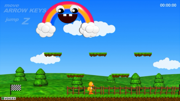 Chica's Magic RainbowChicaと魔法の虹! だと思った?残念!!! 早い話死にゲーである。 様々な罠が満載されており、それらに掠っただけでもあっさり死に、チェックポイントからやり直しとなる。 百聞は一見に如かず、「やればわかる」という単純明快な難しさが特徴。 クリアすると、Animdudeが解禁される。 【3分以内クリアのコツ】 ちなみに、理論上は2分以内でもクリア可能なので、案外余裕はあったりする。