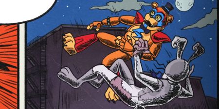 FreddyとGregoryはピザ屋から抜け出し、崩れ落ち始めた地下を走っていた。