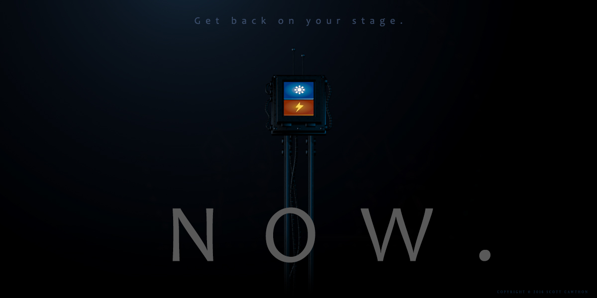 画像上部には「Get back on your stage.」(自分のステージに戻れ)、