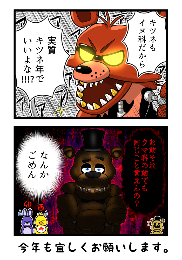 • 「Foxy's Year...?」の端っこのゴールデンフレディがかわいい -- F FB? 2024-09-13 (金) 16:59:11