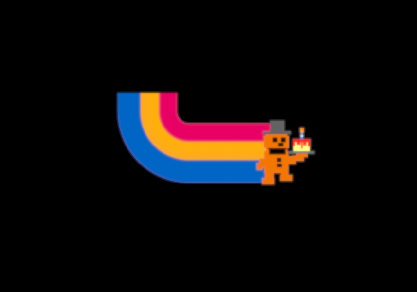 Take Cake to the Children(FNAF2)と同じFreddyもしくはFredbearのドットが、Chica's Magic Rainbowと同じ配色の虹の尾を引いている画像である。