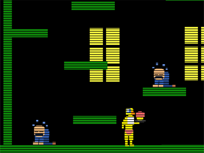 Chica's Party ・通常ゴール ステージ内にある4つのケーキを集め、ステージ内にいる4人の子供に配る。 出現したEXITに向かう。 ・裏ゴール EXITの左上にある足場から左へジャンプすると、壁の外に出ることができる。 壁の外に出ると隣の部屋にたどり着くが、 床には判定がなく、そのまま落下する。落ちた先にEXITがあり、それに入る。