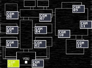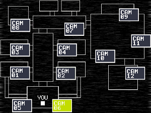 なお、左右共通してダクトを通らない(警備員室で正面からしか攻めてこない)のは、 トイフレディ、フレディ、フォクシー、パペット(とゴールデンフレディ)である。