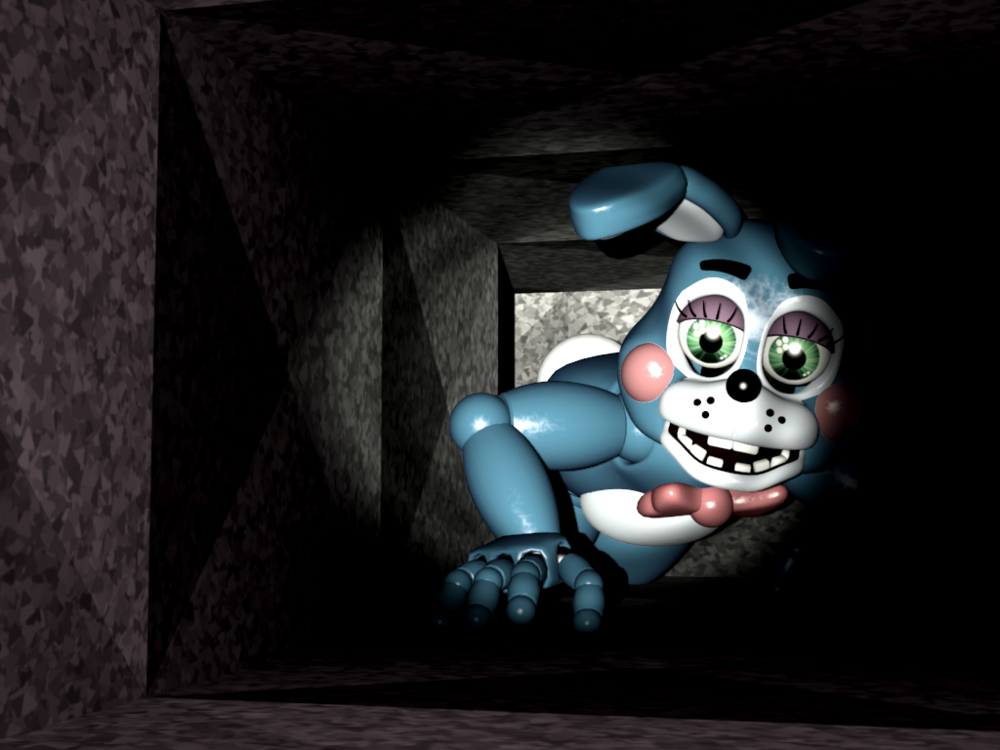 左側のダクトを通るのはトイチカ、BB、ボニー。 よく耳を澄ませて「ゴン…ゴン…」という音が聞こえたらライトをつけつつ警戒しよう。