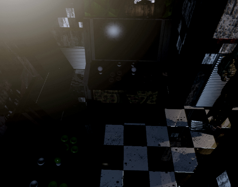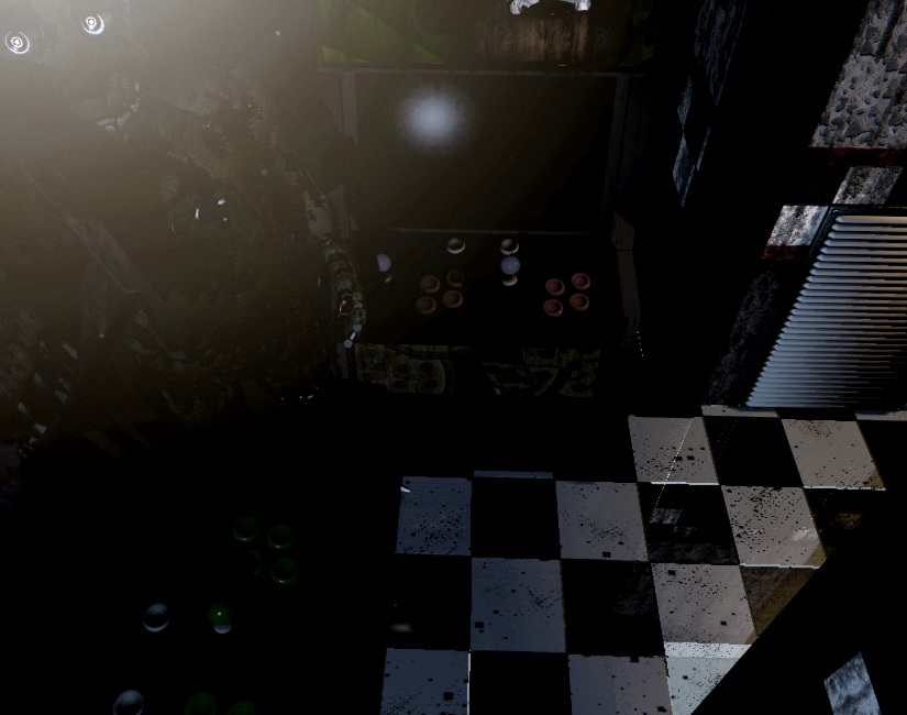 この部屋にもSpringtrapの映り方が2パターンある。 一つ目は右の廊下から半身を覗かせている。随分分かりやすいのですぐに見つける事が出来るだろう。 二つ目は左端のゲーム機と正面のゲーム機の間に立っている。顔がはっきりと映っているため、これも気付くのは簡単である。