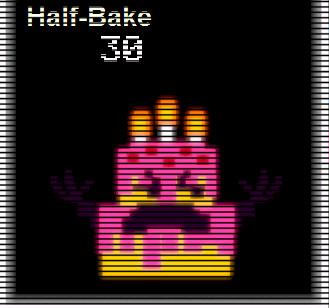 ![]() | Half-Bake (ハーフベイク) | 30 | 「生焼け」。生焼けのケーキ。 |