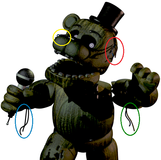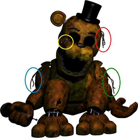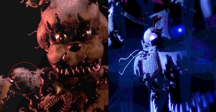 Phantom Freddyと、あるキャラクターの比較を行ったところ、とても似ている事がわかった。 Golden Freddy(FNaF2) ご覧の通り、配線の垂れている部分や、片耳の欠損等、Golden Freddyに酷似している箇所が幾つか確認できる。 だが、同じ特徴を持った機械人形がもう一体いることを思い出して欲しい…… |