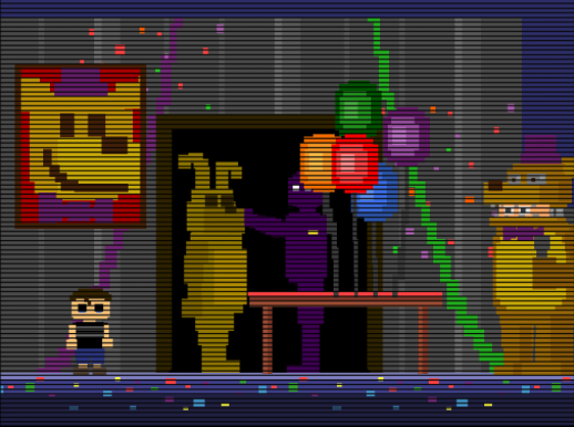 さて、早速本題に入ろう。 まず、今までのFNaFでは夜を重ねる毎に人形たちの数が増えることはあっても、減ることや襲ってきていた人形がある特定の日に出てこなくなる、という事は無かったはずだ。 今まで襲ってきた人形たちが忽然と姿を消し、新たな人形が主人公を襲うという現象が初めて同作中で起こったのだ。 ここで、今出ている状況を整理しよう。 私は今回の敵が「ナイトメア」であることと、途中で出現する人形が変化すること、つまり「主人公にとっての悪夢」が変化していることを前提に考察をしていくと、驚くべき結論に至った。 1~4夜と5夜は別人という線は考えられないだろうか? しかしここで考えて欲しい。6夜・7夜・8夜に関しては前述した四体と同時にフレッドベアーも襲ってきているのだ。どういうことだろうか。 だが、部屋に別の人間の気配を感じるだろうか?…全く感じられないだろう。しかし本当にそうだろうか。 前置きが長くなってしまったが、結論を話そう。 男の子の兄という可能性はないだろうか? しかし兄だけしか考えられないのか、と問われたら前述したようにその可能性は低いと思われる。 しつこいようだが、前述した考察をもう一度結論付けると、 兄は弟を殺したという罪悪感によるショックか、あるいは別の形で「弟」という人格を作り出している。 二重人格説はスコットの今までのTOP画像のメッセージからも考察できる。 Was it me? Or me?