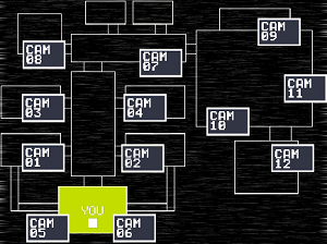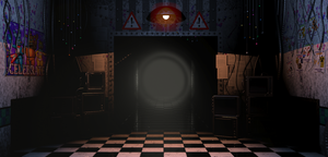 プレイヤーはドアの無いこの部屋で、モニターを見ながら正面にライトを当てて、時にFreddyマスクを被りながら夜を過ごしていくことになる。